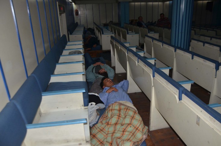 yol yürümekten yorgun düşen işçiler, sendika binasının Şemsi Denize Konferans Salonu'ndaki