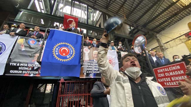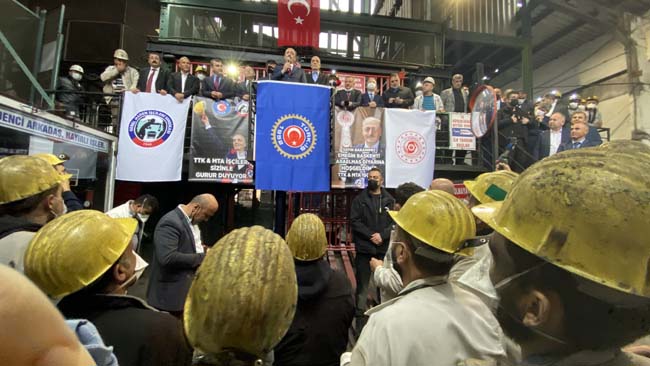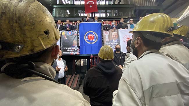 GMİS Genel Başkanı Hakan Yeşil'in ardından işçilere hitap eden Türk-İş Başkanı Ergün Atalay, "1 milyon 200 bin üye 5 milyonluk aile adına bu gün burada Türk-İş'e bağlı 16 sendikanın genel başkanı burada. Hepinizi onlar adına selamlıyorum. Ben evime geldim. İyi günde de zor günde de her fırsatta sizlerle beraber olmaya gayret ettim. Her zaman ifade ediyorum. 2013'te Türk İş Başkanı oldum. Bu bölge 5 bin maden şehidi verdi. Bu ülkenin altı da vatan, üstü de vatan. Denizi de ormanı da vatan. Biz bu vatanın evlatlarıyız. Geçen dönem bin 500 civarı işe girdi. Bakanım en son işçi alındıktan sonra bin 900'a yakın arkadaşımız emekli oldu. Elzem şekilde en kısa zamanda bununla ilgili Hazine Bakanı, Enerji Bakanı ve Cumhurbaşkanımızdan bölgenin işçiye ihtiyacı var. Türkiye'nin de bu bölgeye ihtiyacı var" diye konuştu.