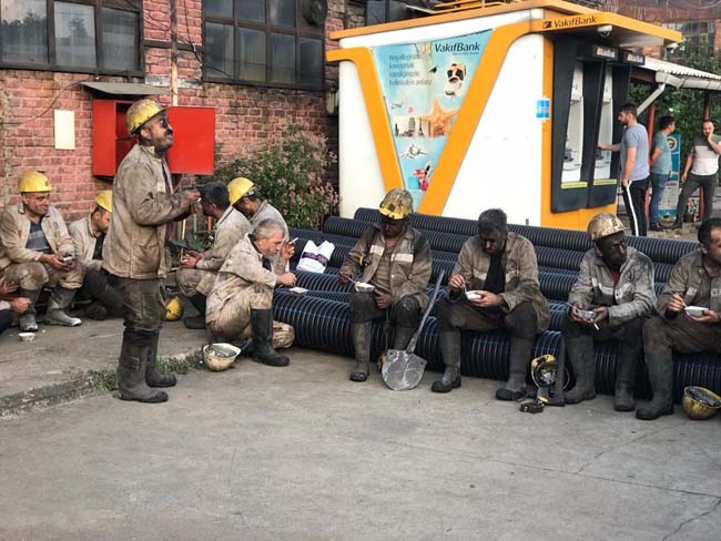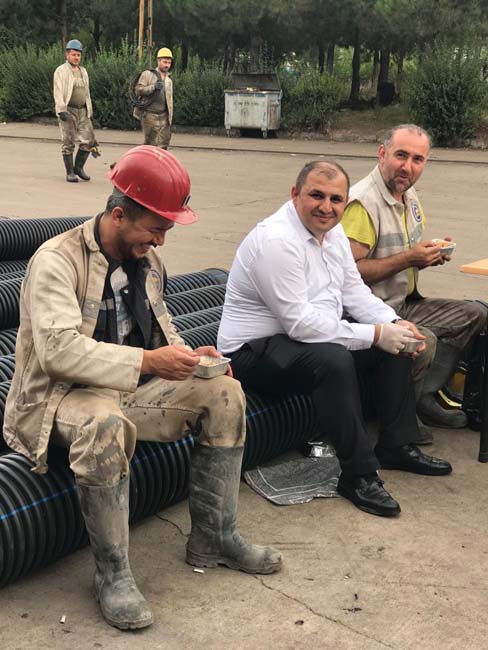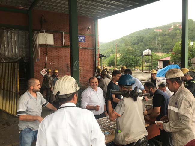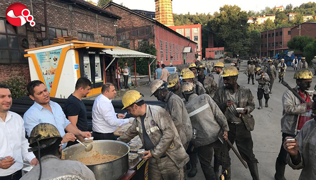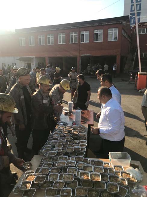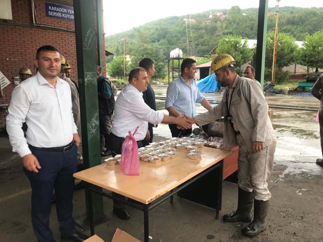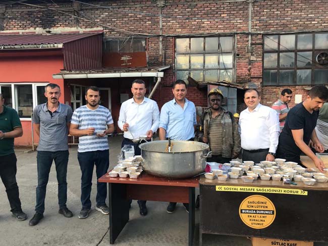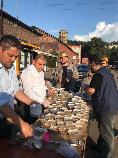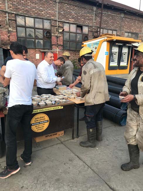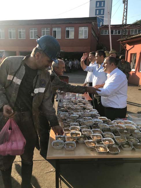 Genel Maden İşçileri Sendikası (GMİS) Mali Sekreteri Volkan Yıldız, Türkiye Taşkömürü Kurumu (TTK) Karadon Müessesesinde çalışan maden işçilerine aşure dağıttı.