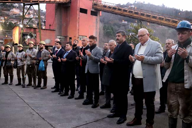 TTK Kozlu Müessesesi Uzunmehmet Kuyu başında gündüz vardiyası öncesi düzenlenen törene, sendika yetkililerinin yanı sıra TTK Kozlu Müessese Müdür Yardımcısı Kadir Dalkılıç, İşletme Müdürü Osman Soylu ve madenciler katıldı.