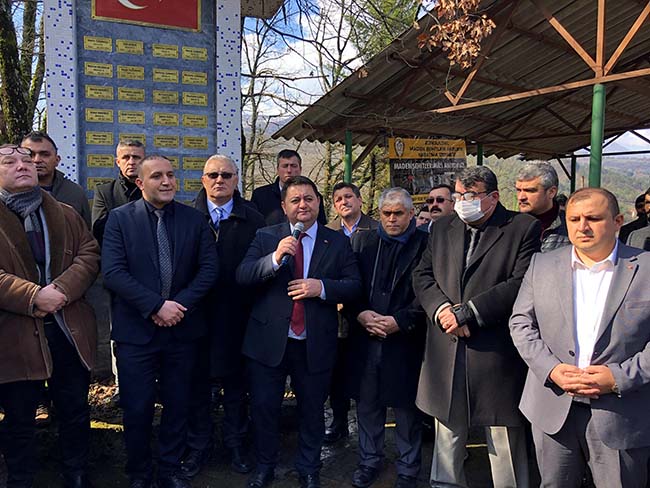 GMİS Genel Başkanı Hakan Yeşil, 30 yıl önce 3 Mart 1992’de geçimlerini sağlamak, rızıklarını kazanmak, çoluk çocuğuna bakmak ve ülke ekonomisine katkı sağlamak için Kozlu’da maden ocağına giren 263 madenci arkadaşlarının şehit olduğunu söyledi. Maden şehitlerinin ailelerinin kamuda istihdamı konusunda çalışmalarının devam ettiğini ifade eden Yeşil, şöyle dedi: