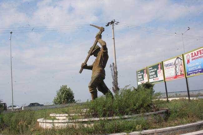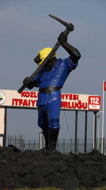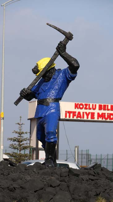 1991 yılında Hacettepe Üniversitesi Güzel Sanatlar Fakültesi Öğretim Üyesi ve heykeltıraş Metin Yurdanur tarafından yapılan madenci heykeli, Kozlu ilçesinin girişine yerleştirildi. Geçen 27 Ekim günü bronz heykel, Kozlu Belediyesi ekipleri tarafından yağlı boya ile madenci renkleri olan mavi ve sarı renge boyandı. Madencinin bareti ve çizmeleri sarı, elbisesi ise mavi renge boyandıktan sonra heykeltıraş Metin Yurdanur, "Bugün aldığım bilgiye göre Kozlu’da yer alan Madenci Anıtı boyanarak tahrip edilmiştir. Anıt heykel tanınmayacak şekilde boyanmış ve bu yolla hem sanat eseri hem de maden emekçileri itibarsızlaştırılmaya çalışılmıştır" dedi.