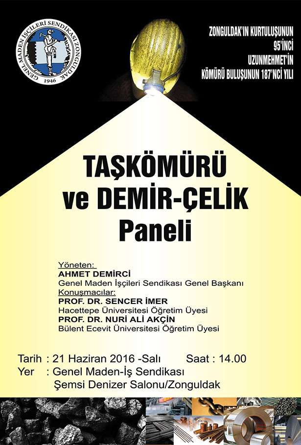 Genel Maden İşçileri Sendikası (GMİS), Zonguldak'ın Kurtuluşu'nun 95. Yıldönümü ve Uzunmehmet'in kömürü buluşunun 187. yılı etkinlikleri kapsamında 21 Haziran 2016 tarihinde 'Taşkömürü ve Demir Çelik' paneli düzenleyecek.