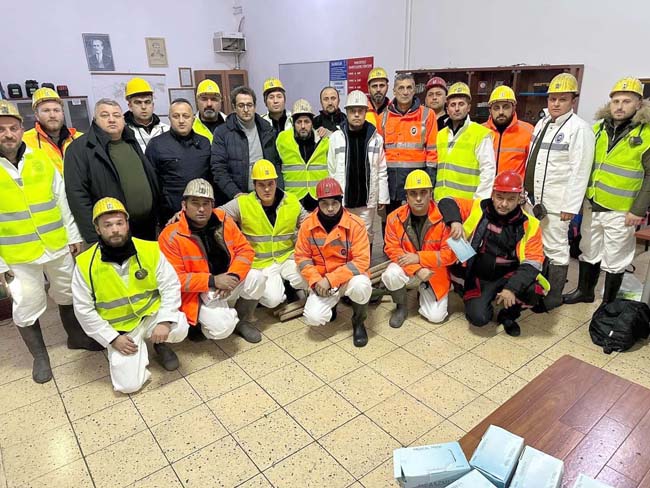 Genel Maden İşçileri Sendikası (GMİS) Genel Başkanı Hakan Yeşil, maden işçilerinin deprem bölgelerindeki arama ve kurtarma çalışmalarına katılmak üzere yola çıkmaya devam ettiğini açıkladı. Yeşil, oluşturulan kriz masasında deprem bölgelerine gönüllü olarak gitmek isteyen birçok maden işçisinin ismini yazdırdığını söyledi. Şu ana kadar toplam 572 maden işçinin deprem bölgesine yönlendirildiğini ifade eden Yeşil, “Tahlisiye ve gönüllü maden işçilerimiz depremzede vatandaşlarımız için kenetlenmiş durumda. Talep geldikçe ekiplerimiz yola çıkıyor. 180 işçimiz daha sabah vardiyasıyla birlikte yola çıkması planlandı. Şu an toplam 752 arkadaşımızın deprem bölgesine yola çıkmış şekilde planlaması yapıldı. Talebe göre bu sayı artabilir. Kurumumuz AFAD ile koordine halindedir. Maden işçimize bu dayanışma için teşekkür ediyorum. Talep oldukça arkadaşlarımız bölgelere giderek kurtarma çalışmalarına katılacaklar.” dedi.