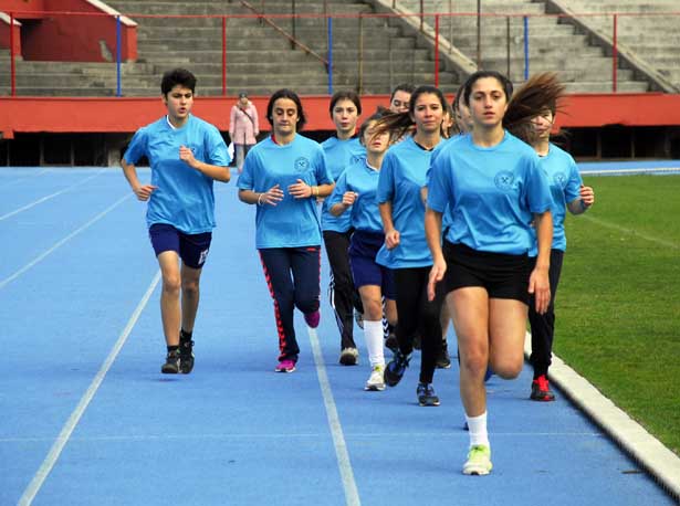 ile 3 bin metre arasında koşularını yapan öğrenciler, soğuk havanın etkisiyle zor