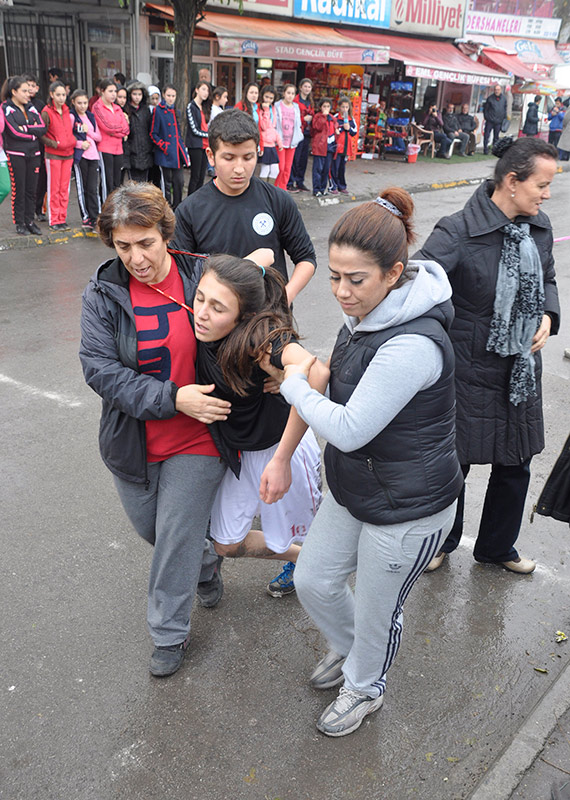 Koşu sonrası baygınlık geçiren 16 yaşındaki Ticaret Meslek Lisesi öğrencisi Funda Şeker finişi zor gördü. Bitiş çizgisini aşar aşmaz öğretmenlerine tutunan sporcu öğrenci "Ambulans gelsin, çok kötüyüm, kalkamıyorum" dedi. Bunun üzerine öğretmenlerinden biri Funda'ya "Kalk ayağa sürünme, yürü, hadi. Adını söyleyebilen kalkıp da yürüyebilir " dedi.