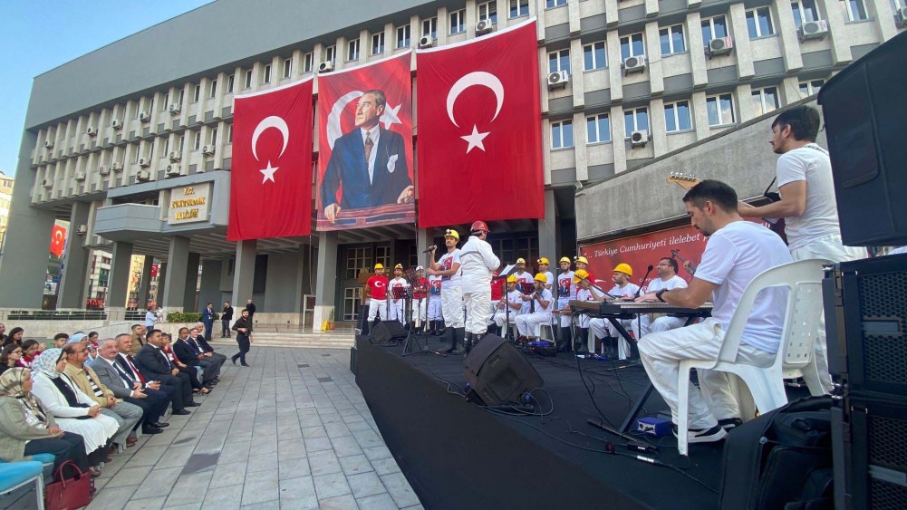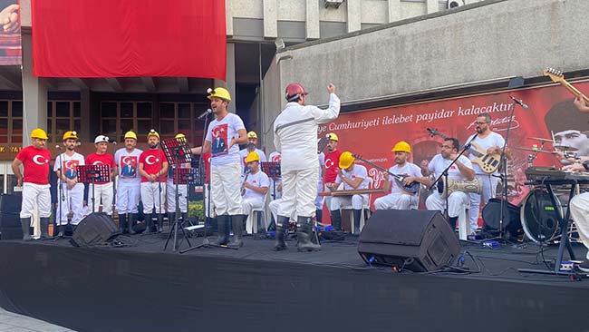 Zonguldak'ta Cumhuriyet'in 100. yılında sahne alan madenci korusunun konseriyle vatandaşlar cumhuriyet coşkusunu yaşadı.