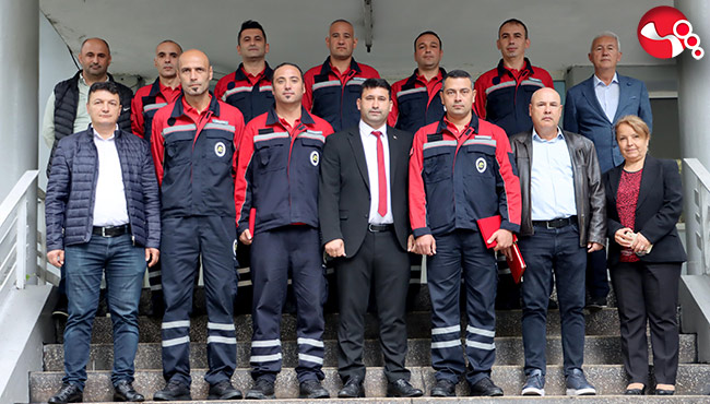 Genel Maden İşçileri Sendikası (GMİS) Genel Sekreteri Yener Arslanbuğa, yarışmadan başarılarla dönen TTK arama ve kurtarma ekibine plaket takdim etti. Tüm maden işçilerinin gururu olduklarını vurgulayan Arslanbuğa, “Genel başkanımız Hakan Yeşil il dışında olduğu için programa katılamadılar ama size selam ve sevgilerini göndererek tebriklerini iletmemi istedi. Bizler iş yerlerinde zor şartlar altında yerin metrelerce altında taşkömürünü yer yüzüne çıkartıyoruz. TTK bünyesindeki tahlisiye ekibi de bu arkadaşlarımızdan seçilmiş özverili arkadaşlarımız. Nerede ihtiyaç olursa gidip canla başla çalışan arkadaşlarımızı tebrik ediyoruz. Deprem bölgesinde neler yaptığınızı tüm Türkiye gördü. Tüm tahlisiye ekibimizi, yarışmada aldıkları dereceler nedeniyle gönülden kutluyor, başarılar diliyorum.” diye konuştu.