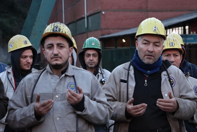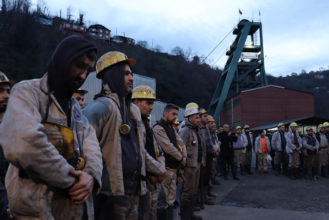 Zonguldak’ta maden işçileri 6 Şubat 2023 tarihinde meydana gelen depremlerde hayatını kaybedenleri dualarla andı. İşçiler, yapılan duaların ardından çalışmak için yerin metrelerce altına indi.