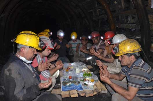 8 yıllık Maden Mühendisi olan İşletme Müdürü Uğur Akkurt (34), Ramazan ayının bütün İslâm alemine ve Türkiye'ye hayırlı olması dileğinde bulundu. Yerin altında işçilerle bir arada sofraya oturmanın sevincini yaşadıklarını dile getiren Akkurt, şunları söyledi: "Madencilik zor bir meslek. Yerin altında çalışıyoruz. Mübarek Ramazan ayında da arkadaşlarımızla beraber ailemizden uzakta yerin altında çalışma saatimiz sahura denk gelirse sahurumuzu, iftara gelirse iftarımızı yapıyoruz. Ailemizden uzakta sahur yaptığımız için içimiz buruk. Bir taraftan sevinçliyiz; çünkü arkadaşlarımızla beraber sahur yapıyoruz. Güzel bir duygu. Yeraltında hayatını kaybetmiş madenci arkadaşlarımıza Allah'tan rahmet diliyorum, bütün madenci arkadaşlarımıza ve ülkemizde diğe iş kollarında çalışan herkese kazasız belasız çalışmalar diliyorum." İşçiler, oruca niyetlenmelerinin ardından mesailerine kaldıkları yerden devam etti.
