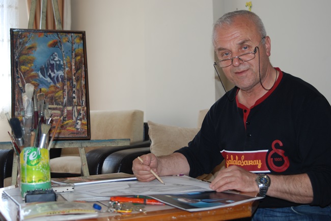 Zonguldak’ın Ereğli ilçesine bağlı Kandilli Beldesi’nde Türkiye Taşkömürü Kurumu’ndan emekli olan 1958 doğumlu Mahmut Kocaman, boş zamanlarını değerlendirdiği resim yapma yeteneğini kara kalem çalışması üzerinde geliştirerek yeni eserlere imza atıyor.