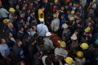 Sağlık ekipleri, işçinin hayatını kaybettiğini teşhis etmesi üzerine madencinin cansız bedeni battaniyeye sarılarak ambulansa taşındı.