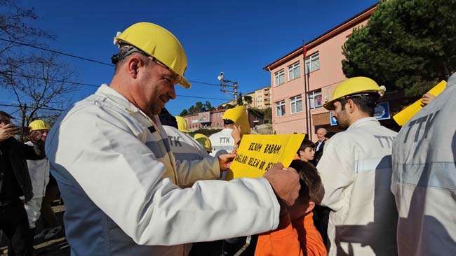 Zonguldak'ın Kilimli ilçesinde 4 Aralık Dünya Madenciler Günü, duygu yüklü bir buluşmaya sahne oldu. Yerin metrelerce altından çıkan madenciler, üzerlerinde iş kıyafetleri çocuklarının okuluna ziyaret gerçekleştirdi. Babalarını karşılarında gören çocukların sevinci, madencilerin tüm yorgunluğunu unutturdu.