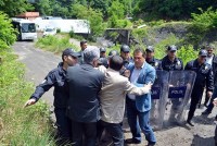 Burada engeli aşarak madene inmek isteyen milletvekillerine polis izin vermedi.