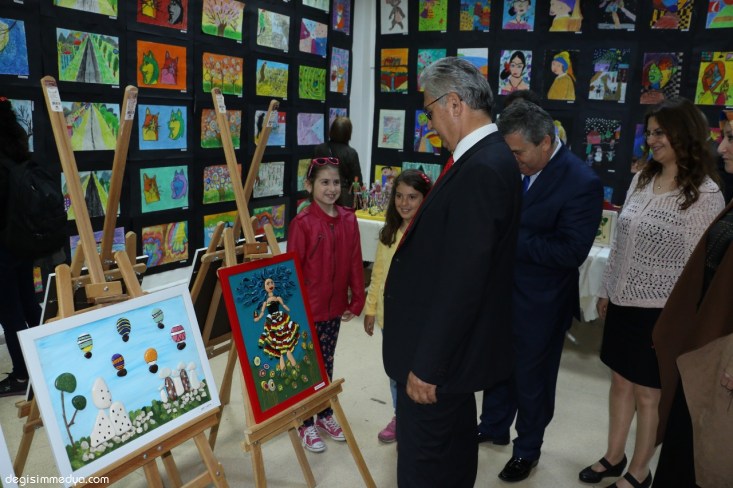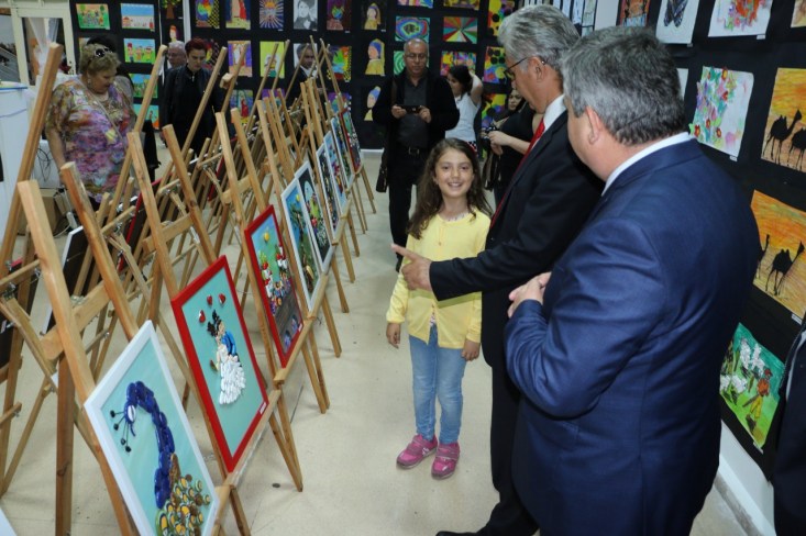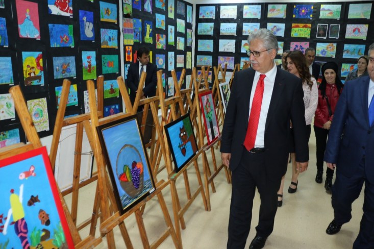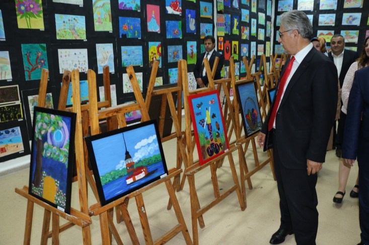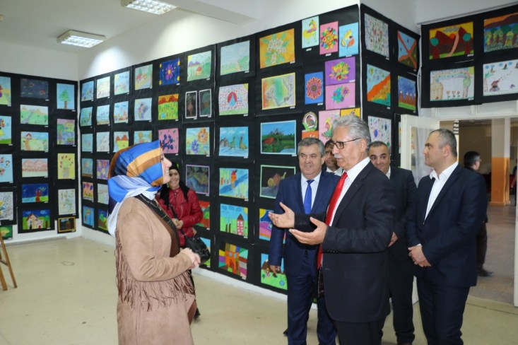 İlköğretim Okulu öğrencileri tarafından hazırlanan resim sergisin,i ziyaret
