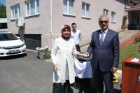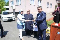 Kaymakam Nazım Madenoğlu, Fiziksel Engelliler Derneği Başkanı İsmail Şentürk'e, Halk eğitim Merkezi tarafından düzenlenen kurslara verdiği katkı dolayısıyla plaket takdim etti.