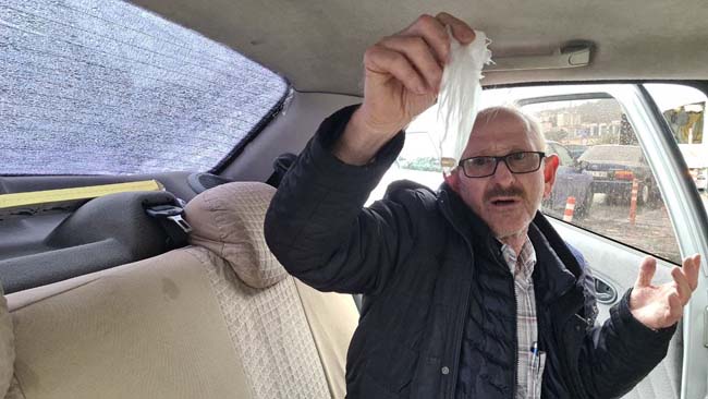 Alaplı’da düğün mevsimlerinde yorgun mermi vakalarının arttığını belirten araç sahibi Metin Şarkın, "Evden geldim, çarşıya indim ve alışveriş yaptıktan sonra tekrar eve döndüğümde arabamın camının kırık olduğunu gördüm. Kurşun izi mi diye arabanın arka kapıyı açarak koltuğu söktüm ve koltukta kurşunu gördüm. Bu kurşunu oradan aldım ve gördüğünüz gibi elimde duruyor. Bu kurşun bana da isabet edebilirdi. Sokakta oynanan çocuklara da isabet edebilirdi. Bu kurşun nereden geldiğini öğrenemedim. İlçemizde bilinçsiz silah kullanımına bağlı olarak çok sık yorgun mermi vakaları yaşandığına şahit oluyoruz. Bu kez de benim aracıma düştü. Mala geldiği için çok üzülmüyorum. Buradan silah atanlara sesleniyorum, düğünleri kana bulamasınlar. Bugün aracıma isabet etti. Zarar mala geldi. Yarın Allah korusun cana da gelebilir. Halkımızı da bilinçsiz silah kullanımıyla ilgili duyarlı olmaya davet ediyorum" açıklamasında bulundu.