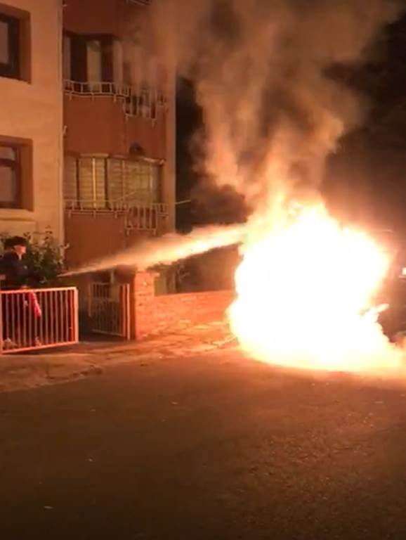 Vatandaşların alevlerle mücadele ettikleri o anlar cep telefonu kamerası ile saniye saniye kaydedildi.