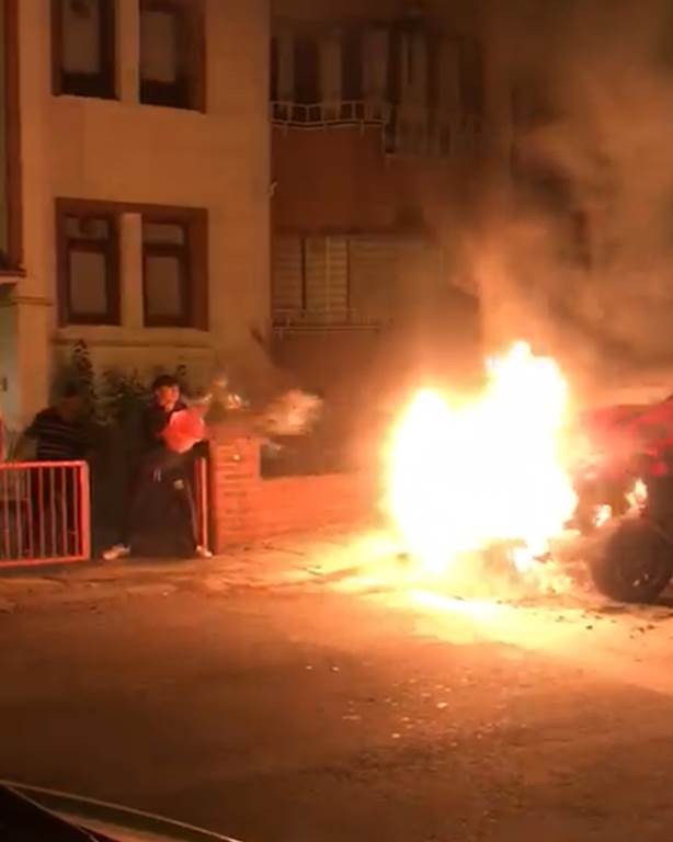 Bartın’da park halindeki aracın alev aldığını gören vatandaşlar yangını söndürebilmek için seferber oldu. Vatandaşların su, battaniye ve yangın tüpleriyle müdahalesine rağmen büyüyen yangında araç kullanılamaz hale geldi.