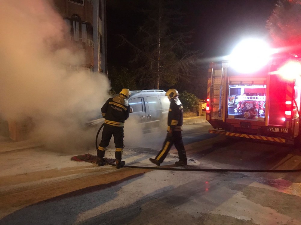 Edinilen bilgilere göre Bartın’da Tuna mahallesi Gülkent sitesinde park halindeki Volkswagen marka 06 HB 1935 plakalı hafif ticari aracın motor kaputundan alevler yükselmeye başladı. Duman ve alevleri fark eden vatandaşlar durumu itfaiye ekiplerine bildirdi. Bu sırada çevre sakinleri alevlerin büyümemesi için ıslattıkları battaniye ile motor kaputunu örterek hava temasını kesmeye çalıştı. Bir yandan su dolu kovalarla yangını söndürmeye çalışan vatandaşlar yangın tüpleriyle de alevlere müdahalede bulundular. Tüm müdahalelere karşın alevlerin büyüdüğü görülürken yangın Bartın Belediyesi itfaiye ekiplerinin müdahalesi ile söndürüldü.