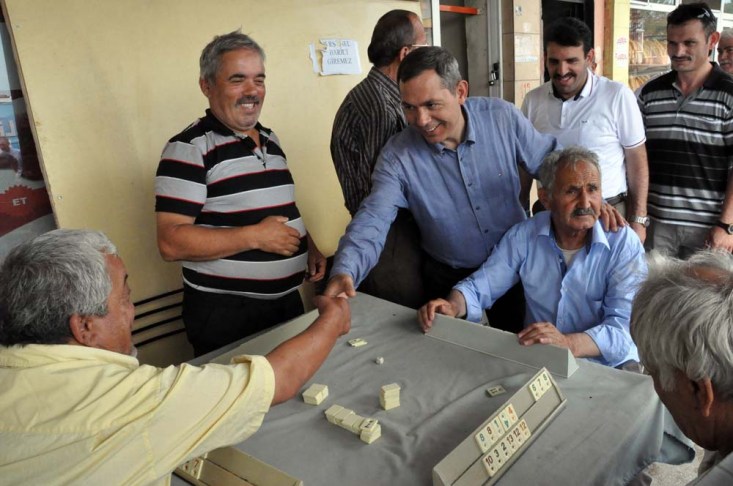vatandaşlarla bir araya gelen Uysal, Cumartesi günü akşamı da, önce