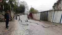 Mahallesi'nin ana yolunda çökme meydana geldi.