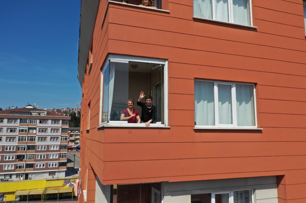 Balkonlara ve camlara çıkan vatandaşlar müziğe alkış tutarak eşlik ederken, bir yandan da cep telefonlarıyla o anları kaydettiler. Bir süredir evlerinden çıkamayan çocuklar çizgi film kahramanlarının kostümlerini giymiş sanatçıların danslarına eşlik ettiler, eğlendiler.