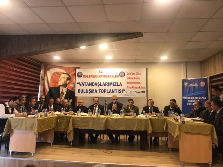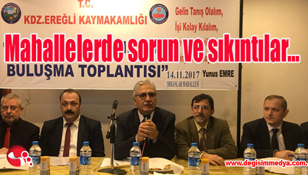 Karadeniz Ereğli Endüstri Meslek Lisesi Konferans Salonu'nda gerçekleştirilen toplantıya Kaymakam Madenoğlu başkanlık etti. Toplantıya çok sayıda mahalle sakinleri de katılarak, sorun ve sıkıntılarını anlattı.