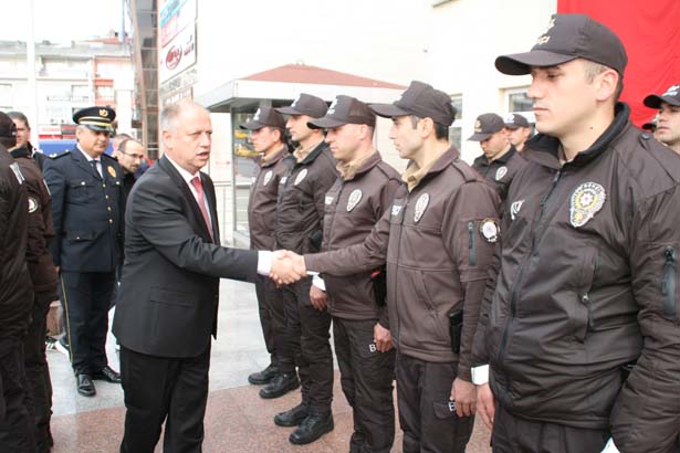 Müdürlüğü önünde gerçekleştirilen törende İlçe Emniyet Müdürü Ferdi Kuyu,