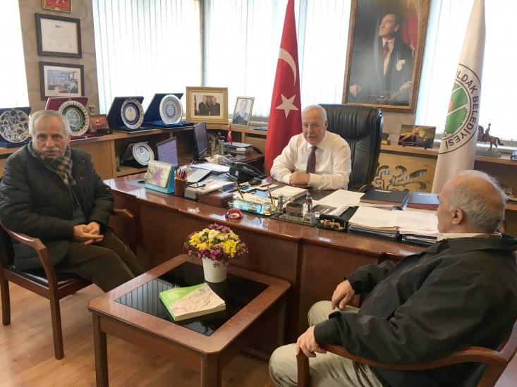 Tepebaşı Mahalle Muhtarı Mustafa Akkaya ve mahalle sakinleri, Tepebaşı'nda yapılan çalışmalardan ötürü Belediye Başkanı Muharrem Akdemir'e 'teşekkür' ziyaretinde bulundular. Zonguldak Belediyesi Fen İşleri Müdürlüğü tarafından, Tepebaşı Mahallesi'nde yapılan beton yol ve parke çalışmalarından ötürü Başkan Akdemir'e teşekkür eden mahalle sakinleri, yapılan çalışmalardan ötürü memnuniyetlerini dile getirdiler. Ziyarete; Zonguldak Giresun İl ve İlçeleri Derneği Başkanı Yusuf Hıdır'da eşlik etti. Ziyarette yaptığını konuşmasında; Belediye Başkanı Muharrem Akdemir'e ve ekibine teşekkür eden, Tepebaşı Mahalle Muhtarı Mustafa Akkaya; "Belediye Başkanımız bugüne kadar bizleri hiç kırmadı. Mahallemize elinden gelen desteği gösterdi. Eksikliklerimiz yok mu var. Onları da zamanla çözüme kavuşturacağımızı düşünüyorum. Yapılan çalışmalar, mahalle sakinleri tarafından da beğeniliyor. Bır konu hakkında Başkanımdan destek istiyoruz. Mahallemize park alanı yapılmasını talep ediyoruz. Başkanımızın da bu konuda bizi kırmayacağını, elinden gelen desteği vereceğini düşünüyoruz." şeklinde konuştu. Zonguldak Giresun İl ve İlçeleri Derneği Başkanı Yusuf Hıdır ise ziyarette yaptığı konuşmasında; "Bugüne kadar Başkanımız bizleri hiç kırmadı. Yönetim kurulu ve mahalle sakinleri olarak Başkanımıza teşekküre geldik. Biz mahalle muhtarımız ile Mahallemiz adına bir temsilciyiz. Başkanımıza bundan sonraki çalışmalarında başarılar dileriz." dedi.