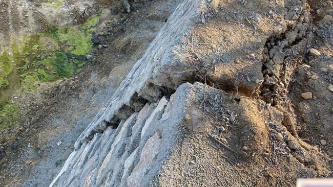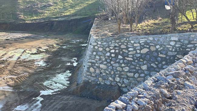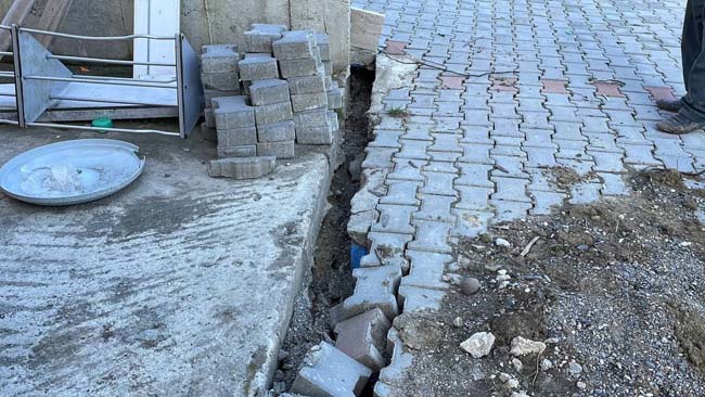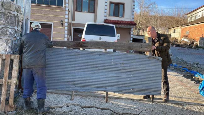 “Daha önce buralar dökme topraklı, sulak bir yerdi. Sonra doldurulup buralar düzlendi. Birkaç firma geldi talip oldu. Toprak analizi falan yapıldıktan sonra bırakıp gittiler. Yer kalmadı diye gelip burayı yola yakın şekilde açtılar. O esnada ben kayar yer olduğunu ve evlerimize zarar verebileceğini demiştim. Ölçüp, biçip bu istinat duvarını çektiler. Belki bu kadar yukarı yola doğru gelmeselerdi, dipten yapılsaydı kayma olmayacaktı. Bu sene kar fazla yağdı, yağışlarda etkili oldu. Evlerimizin üzerindeki dağda yarıklar oluştu, toprak kaymaya başladı. Bu sebeple mahalleli olarak geceleri rahat uyuyamıyoruz."
