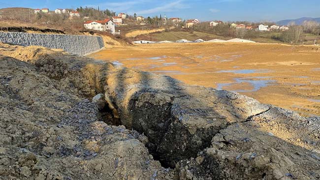 Zonguldak’ın Çaycuma ilçesi Perşembe beldesinde Organize Sanayi Bölgesi’nde (OSB) yeni fabrika yapılması planlanan alan ve çevresinde yoğun kar yağışı sonrası toprak kayması yaşandı. Mahallede bulunan evlerin bahçelerinde ve duvarlarında çatlaklar oluşurken, ana yolda çatlayarak bozulma meydana geldi.