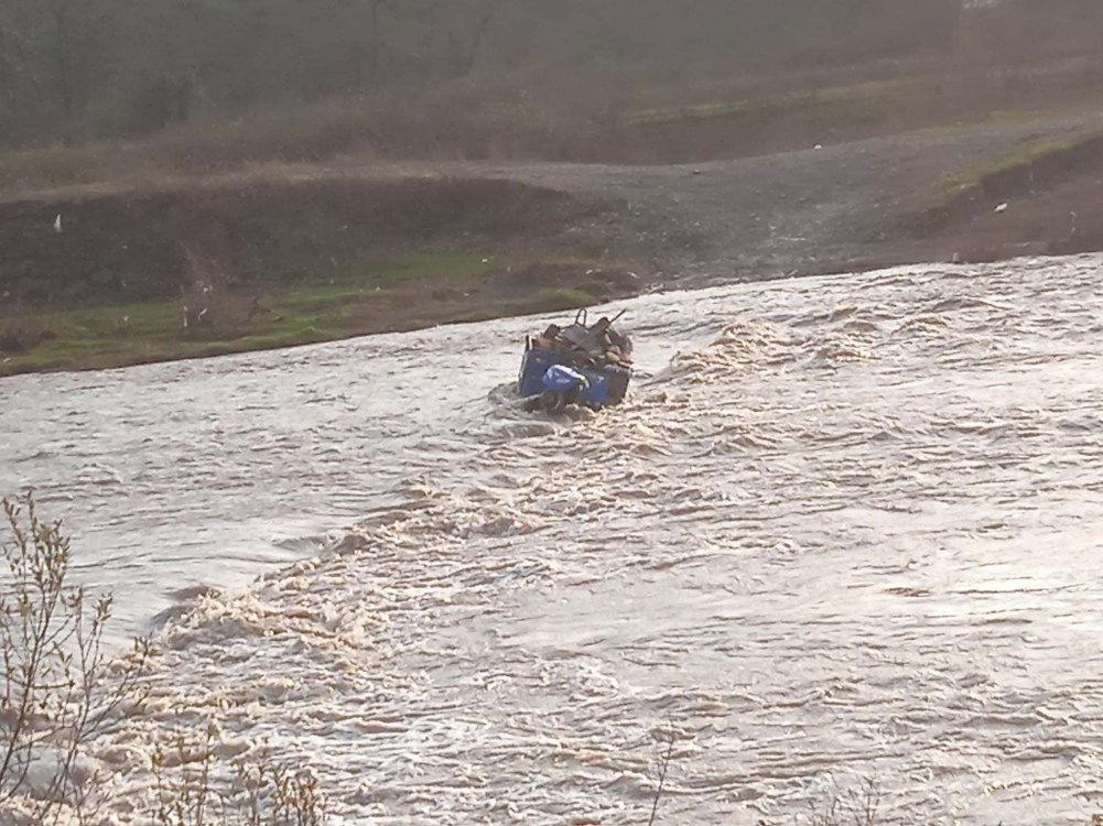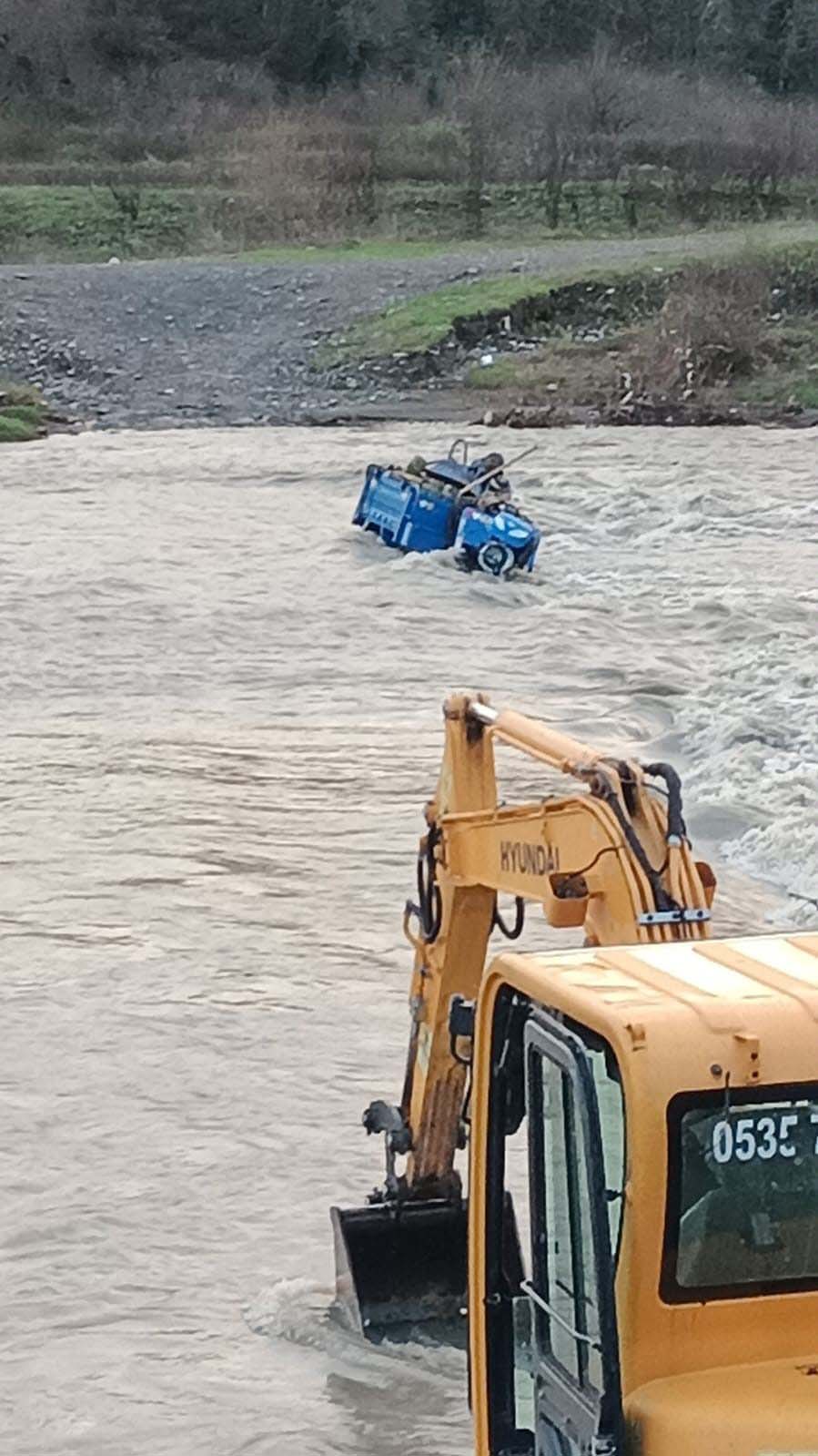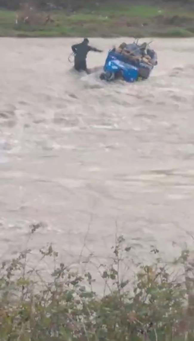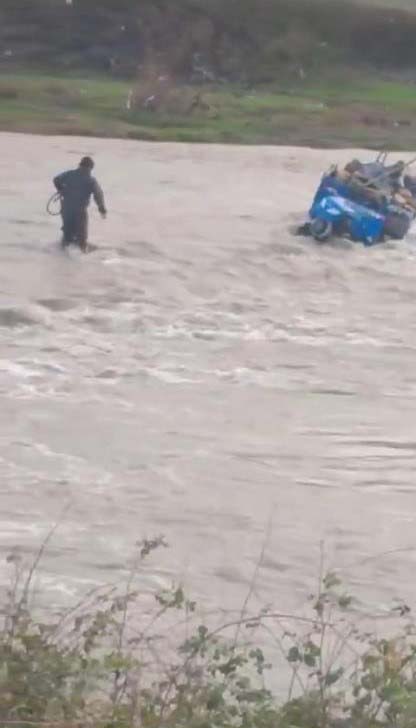 Zonguldak'ın Alaplı ilçesinde "pat pat" olarak tabir edilen tarım aracıyla geçmeye çalıştığı çayda su seviyesinin aniden yükselmesiyle mahsur kalan sürücü, iş makinasıyla kurtarıldı.