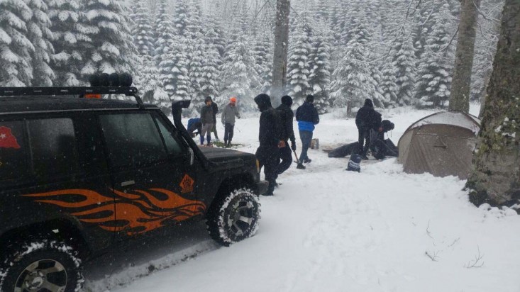 İstanbul ve Sakarya'dan gelen 12 kişilik grup Torkul Göletinde kamp yaparken, gece aniden bastıran kar ile mahsur kaldılar.