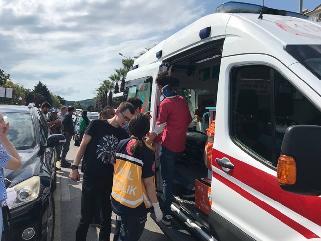Olayı gören çevredeki vatandaşlar 112 sağlık ekiplerine haber verdi. Kısa sürede olay yerine gelen sağlık ekipleri yaralıya yaptıkları ilk müdahalenin ardından özel hastaneye kaldırıldı.