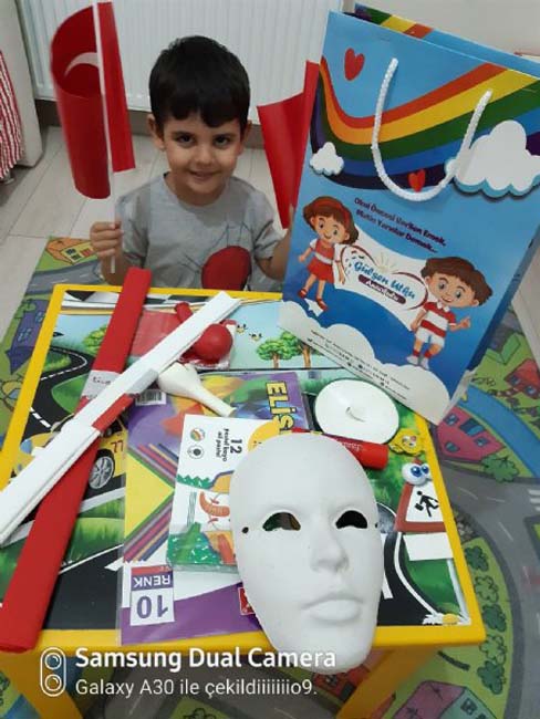 Etkinliğe ilişkin olarak okul yönetiminden yapılan açıklamada, “Ulusal Egemenlik ve Çocuk Bayramı’nın coşkusunu ve sevincini yaşıyoruz, içimiz biraz buruk olsa da. Ülkemizde de görülmeye başlayan Covid-19 salgının oluşturduğu yaraları sarılmaya çalışılırken çocukları da böyle güzel ve özel bir günde sevindirmek en kıymetli olanıydı. Zor bir süreçten geçtiğimiz bugünlerde yavrularınız evlerde bu bayramı en coşkulu ve en sevinçli bir şekilde kutlayacaklar. Çocuklar için sokağa çıkma yasağı ailelerinden de sokağa yönelik endişelerinden kaynaklı, okulumuz çocukları için Milli Eğitim Bakanımız Sayın Ziya Selçuk hocamızın da dediği gibi "Evden katılabileceğimiz, aynı coşkuyu hissedebileceğimiz, neşemizden, sevgimizden, coşkumuzdan kaybetmeyeceğimiz bir program hazırlamanız” adına süs ve kırtasiye materyalleri okul olarak bizler karşılıyoruz. “Malzemeler bizden, eğlence ve şenlik sizden çocuklar”. Sloganıyla 201 çocuğa kırtasiye ve süs malzemeleri ulaştırıldı” ifadelerine yer verildi.