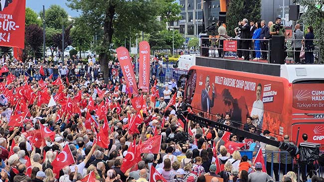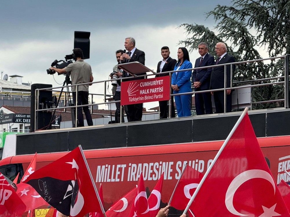 Düzce'de mitinge katılan Mansur Yavaş, "Yargılanmaktan korkmuyoruz. Hiçbirimizin dokunulmazlığı yok. Burada adalet istemeye geldik. Ekrem Başkan için, seçilmiş belediye başkanlarımız için geldik. Gençler, sadece anayasal haklarını kullandıkları için cezaevinde. Allah kimseyi düşürmesin bu duruma. Kendi çıkardıkları yasaya göre bile yatarı yokken, neden tutuyorsunuz bu çocukları? Çifte standart bitsin. Adalet tesis edilsin. Başımız dik şekilde, alnımız açık bir şekilde halkın karşısına çıkmak istiyoruz" dedi.