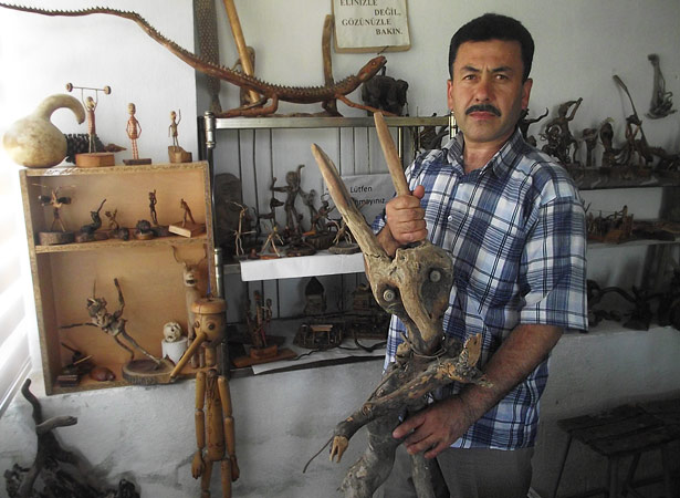 21 yıldır imamlık yapan Nahit Açıksöz, 8 yıl önce caminin altında oluşturduğu atölyede, boş zamanlarını geçirmek için figür yapmaya başladığını belirterek, şöyle dedi: "Ağaç kökleri ve dalları toplayarak, hayal gücümü kullanarak bilim kurgu filmlerinde gördüğüm soyut varlıkları yapıyorum. Zamanla kendimi geliştirerek yaklaşık 200 figür sahibi oldum. Ormandan, çevremden ve denizde kıyıya vuran kökleri ve dalları toplayarak eserleri yapıyorum. Artık figürleri halka açık fuarlarda sergilemeye başladım. Şuana kadar 8 sergimi yapmış durumdayım. Eserlerimin beğeni toplaması beni sevindiriyor. Eğer imam olmasaydım tiyatrocu olurdum" dedi.