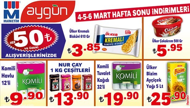 Marketim Aygün'de haftasonu indirimlerini kaçırmayın.