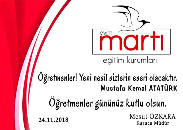Etkinliklerde, tüm öğretmenlere teşekkür eden Martı Eğitim Kurumları Kurucu Müdürü Mesut Özkara, "Başta başöğretmen Mustafa Kemal Atatürk ve şehit öğretmenlerimiz olmak üzere, tüm öğretmenlerimizin öğretmenler gününü kutluyorum" dedi.