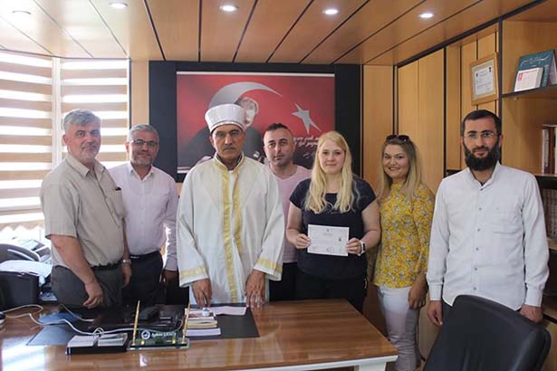 İlçe Müftüsü Ayhan Ermiş, Müslüman olan Maritta Kristina'ya, “İnşallah bütün günahlarınızdan arınarak cennetle müjdelenenlerden olursunuz” dedi.