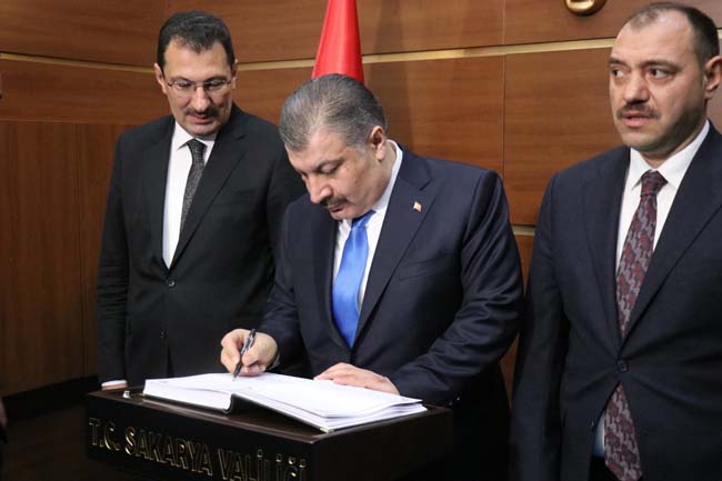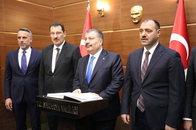 Sağlık Bakanı Dr. Fahrettin Koca, “Bugün Sakarya'da sağlık altyapılarımızın durumunu yerinde görmek, tıp fakültesi öğrencilerimizle görüşmek ve sağlık çalışanlarımızla hemhal olmak için bulunuyoruz. Valimiz ve il sağlık müdürümüzle birlikte şehrimizde verilen sağlık hizmetleri ve yeni hizmet mahalleri hakkında bir değerlendirme yapacağız. Sakarya'da yaşayan vatandaşlarımızın sağlığı için daha iyi ne yapabiliriz, bunu değerlendireceğiz” dedi.