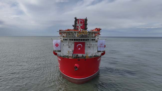 Türkiye'nin enerji filosuna katılan en yeni üyesi "Yıldırım" derin deniz sondaj gemisi, Filyos Limanı'nda havadan görüntülendi.