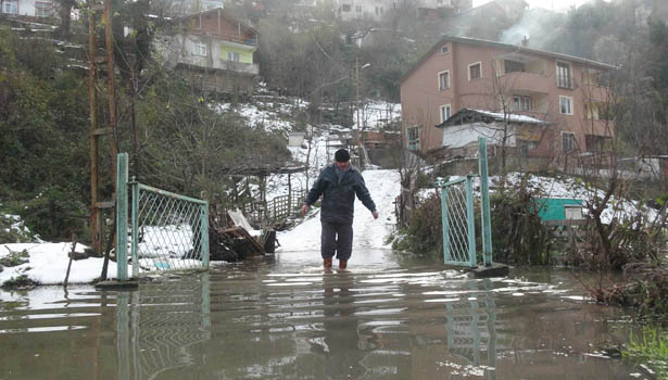 Zonguldak'ta eski asfalt tesisi ve şantiye binası su altında kaldı. Su giderinin tıkandığı belirtilen mahallede kar ve yağmur sularının etkisiyle giderek yükselen sular evleri tehdit etmeye başladı.