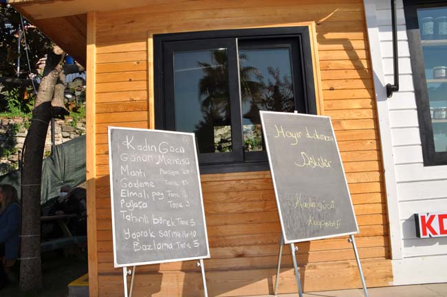 “20 tane ev hanımı, evlerinden çıkarak burada üretim yapıyorlar. Makarna, yufka, reçel, mantı, bazlama ve daha pek çok organik ürün burada satılıyor. Günlük böreklerimiz, sarmalarımız burada yapılıyor ve direkt satışa sunuluyor.