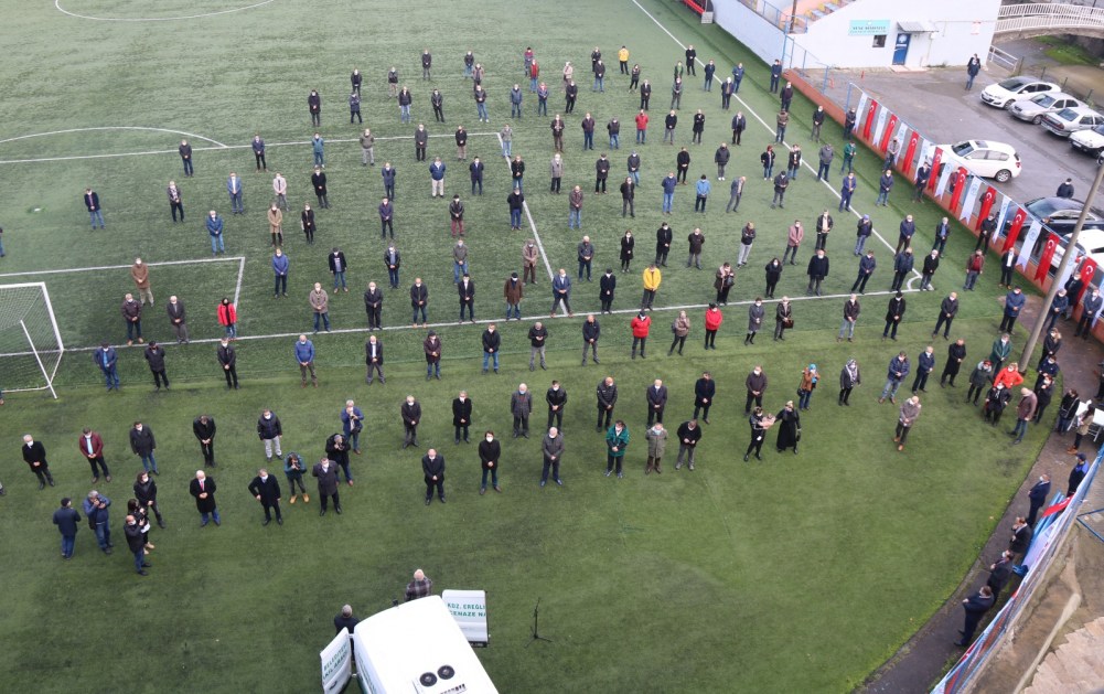 Belediye binası yanındaki Beyçayırı Şehit Vefa Karakurdu Stadı’nda Koronavirüs tedbirleri alınarak gerçekleştirilen törene Kaymakam İsmail Çorumluoğlu, Belediye Başkanı Halil Posbıyık, Alaplı Belediye Başkanı Nuri Tekin, siyasi parti ilçe başkanları ve yöneticileri, belediye meclis üyeleri, aile yakınları ve vatandaşlar katıldı.