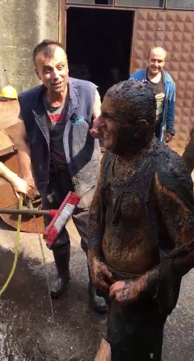 Şakanın ardından açıklama yapan madenci Erol Toprak, “14 sene önce ben başlatmıştım. arkadaşlarla, 14 sene sonra da Allah nasip etti. Aynı geleneği bana devam ettirdiler. Yırttılar. Yağ falan. Mazot talaş. En sonda yıkadılar. Geleneğimiz bu şekilde. 20 yıldır madende çalışıyorum. Her emekli olana böyle bir anı kalsın diye yaptık. Maksat anı kalsın diye” şeklinde konuştu.