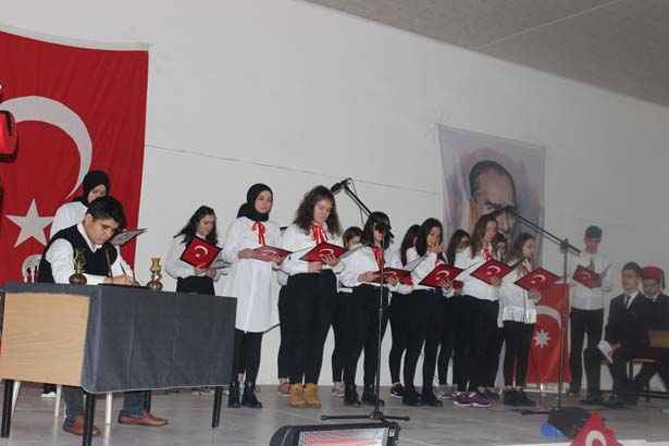Saygı duruşu ve İstiklal Marşı'nın okunmasının ardından, günün anlamı ile ilgili konuşmayı Perşembe Filiz Rifat Güpgüpoğlu Anadolu Lisesi Türk Dili ve Edebiyatı öğretmeni Pelin Yavuz yaptı. Mehmet Akif Ersoy’la ilgili video gösteriminin ardından Çanakkale Şehitlerine adlı şiiri okul müdürü Muhammet Ardıç okudu. Pelin Yavuz tarafından hazırlanan Mehmet Akif Ersoy’la ilgili Oratoryo gösterimi esnasında öğrenciler müzik öğretmeni Mustafa Can Acar yönetiminde Mehmet Akif’e ait “Zulmü Alkışlayamam” şiirinin bestelenmiş halini, “Ez Oğlum” türküsünü ve “Böyledir Bizim Sevdamız” türküsünü seslendirdi. Çocuk Gelişimi ve Eğitimi öğretmeni Melike Obuz ve Çocuk Gelişimi ve Eğitimi öğrencileri tarafından İstiklal Marşı işaret dili ile okundu. Öğrenciler tarafından Mehmet Akif Ersoy’un Ayyıldız bayraklı resmi pazıl halinde birleştirildi.