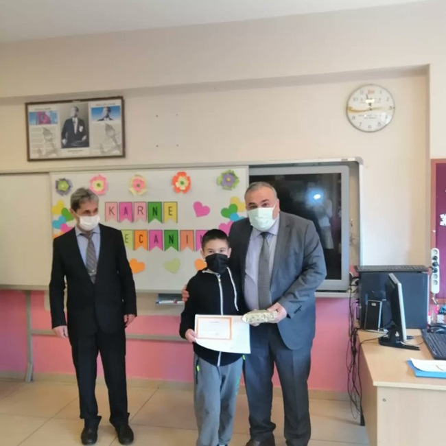 Karadeniz İlçe Milli Eğitim Müdürü İsmail Aksoy ve Şube Müdürleri Adem Gül ile Baghattin Girgin, Bölücek İlkokulu Ortaokulu’nda 1. Dönem karnelerini verdi. İlçe Milli Eğitim Müdürü Aksoy, karne sevinci yaşayan öğrencilerle sohbet etti ve tatilde ne yapmaları gerektiği konusunda tavsiyelerde bulundu. Okul öğretmenleriyle de sohbet eden Aksoy, iyi bir tatil geçirmeleri temennisinde bulundu.