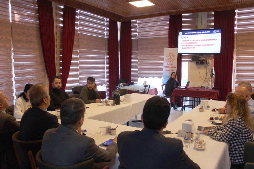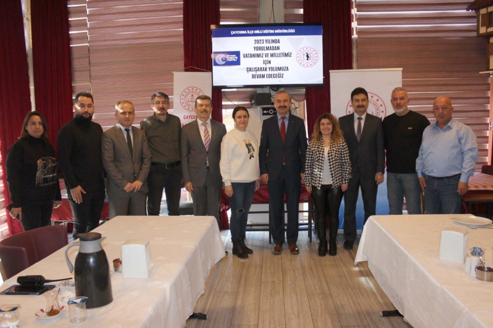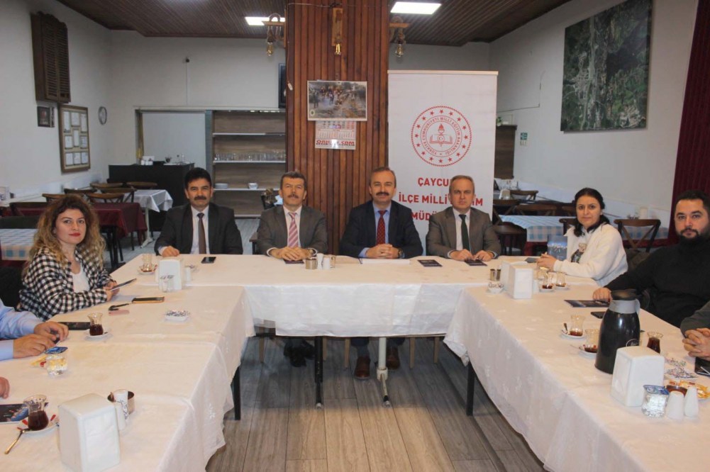 Çaycuma İlçe Milli Eğitim Müdürü İsmail Baş, Şube Müdürleri Nusret Parlak, Muharrem Yol, ve İsmail Çelebi ile ilçede görev yapan basın mensuplarıyla bir araya gelerek düzenlediği basın toplantısıyla eğitim çalışmaları konusunda bilgiler paylaştı.